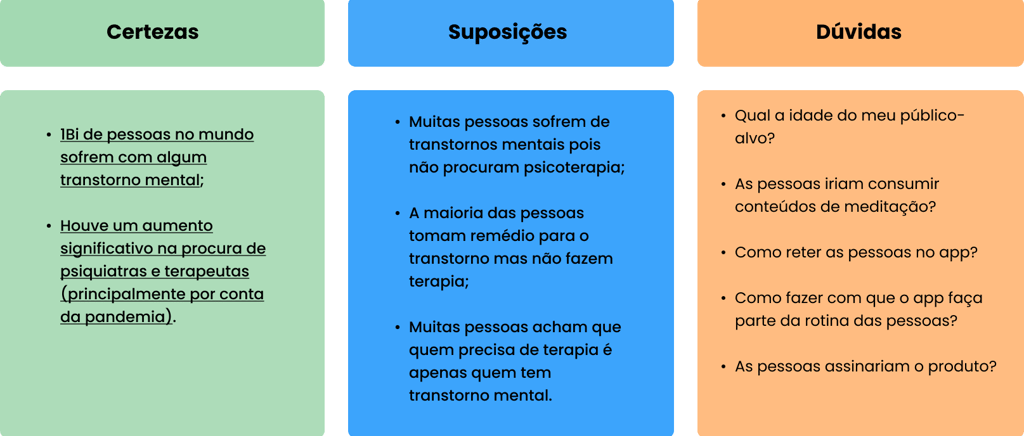 Inicialmente, procurei entender qual a motivação da procura por um aplicativo de saúde mental e encontrei que as pessoas usuárias desejam: