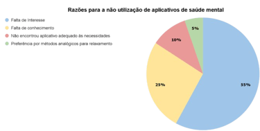 Ainda como resultado da pesquisa, identificamos que 82,9% dos participantes informaram que não utilizam aplicativos de saúde mental. Procuramos entender os motivos da não utilização:
