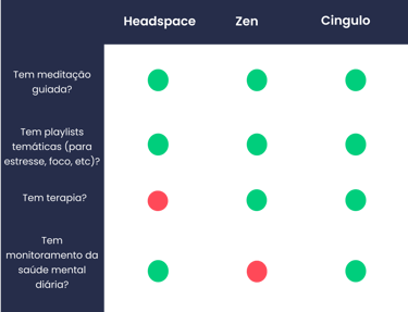 Se formos ainda mais a fundo em nosso Benchmark, podemos nos perguntar: o que esses apps fazem para se adequar às necessidades das pessoas usuárias?