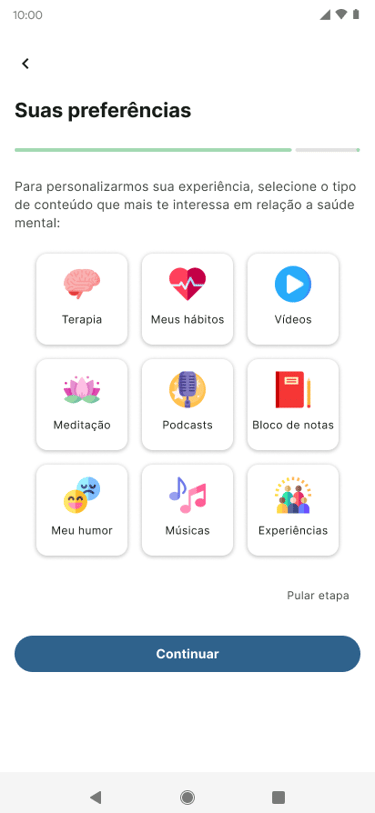 O objetivo desse projeto foi a criação de um aplicativo que oferece recursos como meditações guiadas, rastreamento de humor e sessões de terapia virtual com profissionais qualificados.